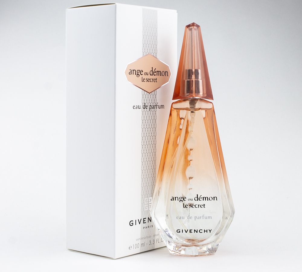 Духи «Ange Ou Demon Le Secret» от компании «Givenchy» из Франции для женщин. Относятся к типу ароматов цветочных. Продукт «Ange Ou Demon Le Secret» был представлен в 2009-м году. Парфюмерная композиция включает: чай и лимон. Средние ноты: пышный пион и страстный жасмин. Базовая нота: листья пачули и древесные ноты. Продукт «Ange Ou Demon Le Secret» продолжает коллекцию «Ange Ou Demon», лицом которой стала Ума Турман. Притягательный аромат белых цветов сочетаются в запахе с нотками лимона из Италии, чая и светлых сортов дерева. Парфюм упакован в стильный флакон цвета розового шампанского.