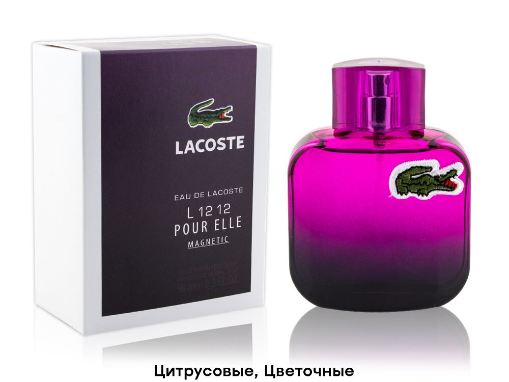 Выпущенный в 2016 году Eau de Lacoste L.12.12 Pour Elle Magnetic от марки Lacoste классифицируется как женский аромат и принадлежит семействам Цитрусовые и Цветочные. Eau de Lacoste L.12.12 Pour Elle Magnetic входит в коллекцию L.12.12..
